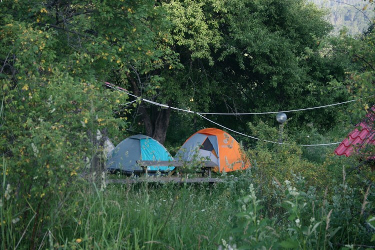 Κατασκηνώσαμε δίπλα σε μια καλύβα και κάτω από μια άγρια μηλιά, αγαπημένο στέκι μιας καφέ αρκούδας, που απ’ότι μάθαμε το Σεπτέμβρη επισκέπτεται συχνά για τα μεταμεσονύκτια “σνακ” της.