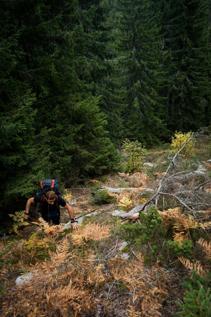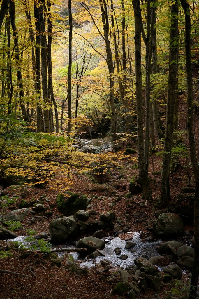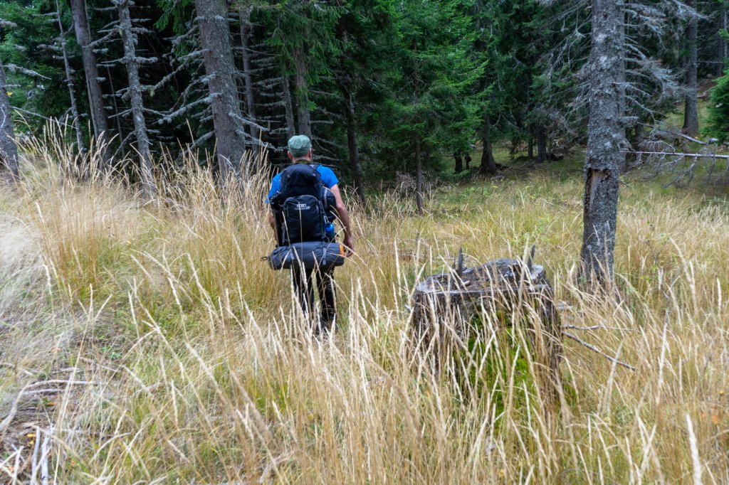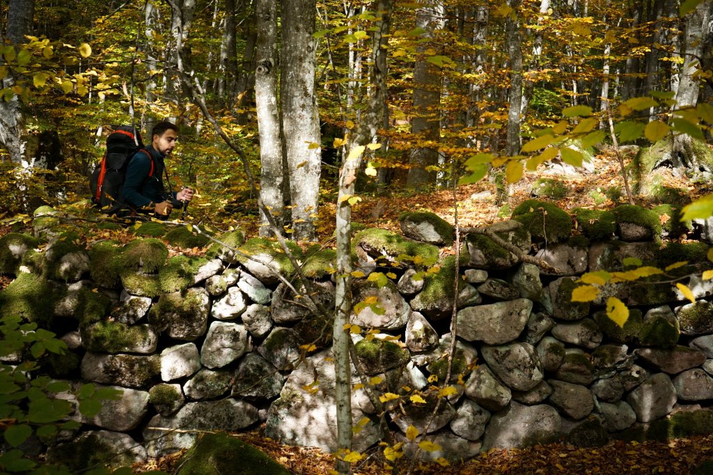 Μετά από τα πρώτα χαμόγελα όμως γρήγορα έρχεται η απογοήτευση. Ο δασικός δρόμος στη μεριά της Βουλγαρίας, στον οποίο βασιζόμουν να μας βγάλει τα πρώτα δύσκολα χιλιόμετρα μέχρι το λιβάδι που υπολόγιζα να κατασκηνώσουμε, είναι κλειστός· το δάσος έχει μπει για τα καλά μέσα. Και σαν να μην έφτανε αυτό η συνοριογραμμή που σε άλλα σημεία της Ροδόπης είναι “λεωφόρος”, εδώ, στην καλύτερη περίπτωση, είναι μονοπάτι, με μεγάλους όγκους βράχου να σε αναγκάζουν σχεδόν σε αναρρίχηση. Φτάνουμε στην πυραμίδα 122 και συνεχίζουμε προς 123.. το τοπίο άγριο αλλά ταυτόχρονα μαγικό. Περπατάμε, σκαρφαλώνουμε και τρυπώνουμε μέσα από κλαδιά και πεσμένους κορμούς. Η φωνή πίσω μου όλο και πιο ανήσυχη με βάζει σε σκέψεις.