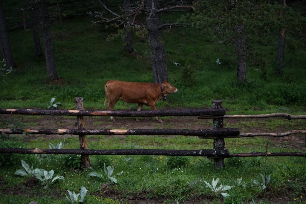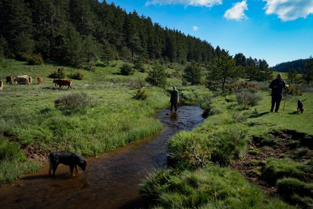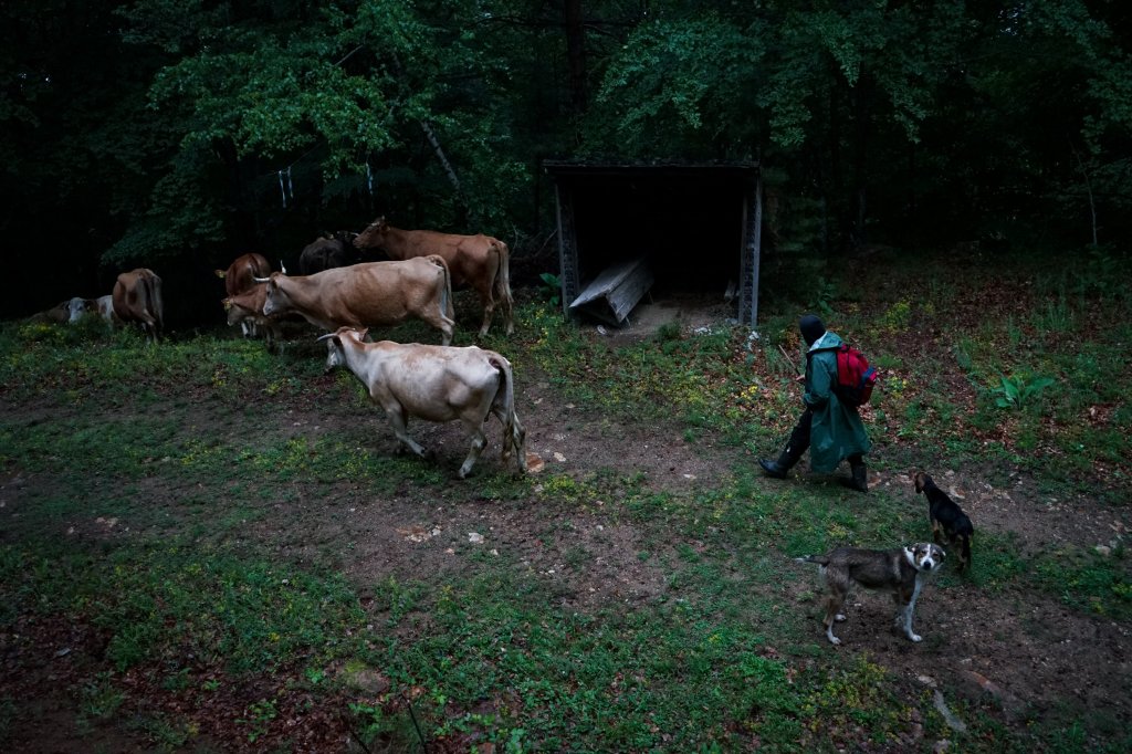 Ο ήλιος ήταν ακόμη καλά κρυμμένος πίσω από τα πυκνά σύννεφα, όμως είχε αρχίσει να χαμηλώνει. Μούσκεμα και εξαντλημένοι πλέον, μοιραζόμαστε με τα σκυλιά λίγο από το κολατσιό μας. Βρισκόμασταν στους πρόποδες του οροπεδίου και λίγα μέτρα από τον χώρο κατασκήνωσης, οι αγελάδες έβοσκαν -αμέριμνες – μες την βροχή, και εγώ προσπαθούσα να βάλω άτακτες εικόνες και σκέψεις σε μια σειρά. Όλη τη μέρα έτρεχα πίσω από το κοπάδι προσπαθώντας να βγάλω μια φωτογραφία που θα έδειχνε αυτό που έβλεπα αλλά κυρίως αυτό που ένιωθα. Η βροχή και η συμπεριφορά τους δεν βοηθούσε, πέρα από αυτό όμως, αυτά τα ζώα είχαν κάτι που δεν περίμενα να συναντήσω.