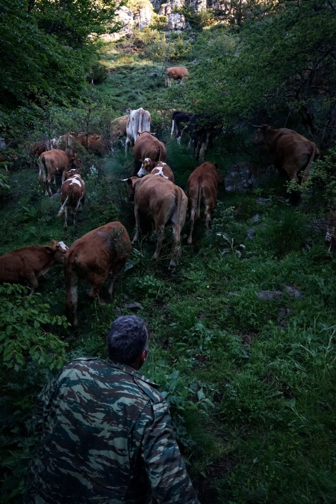 Λίγο αργότερα βρίσκομαι μέσα στο δάσος μαζί με τον Τάσο και τις αγελάδες που βόσκουν σε ένα ξέφωτο. Όλα πήγαιναν καλά. Ο Γιάννης έπρεπε να κανονίσει πρώτα κάτι εκκρεμότητες, έτσι θα τον βρίσκαμε στο τέλος της σημερινής διαδρομής, κοντά στην αποψινή κατασκήνωση.
