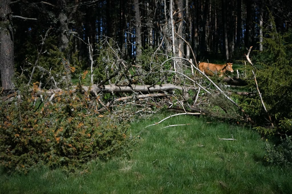 Βλέποντας τον χάρτη στο κινητό ξεκινώ τη μικρή μου εξερεύνηση στην περιοχή. Μετά από μια όμορφη κυκλική πορεία, στέκομαι μπροστά σε ένα γνώριμο λιβάδι και κοιτώ μακριά προς τον δρόμο για την καλύβα. Νιώθω και ακούω το χαλάζι να πέφτει στην κουκούλα μου, βλέπω τις αγελάδες μαζεμένες κάτω από τα δέντρα και θυμάμαι τα λόγια του Γιάννη, “το ένστικτό τους”!