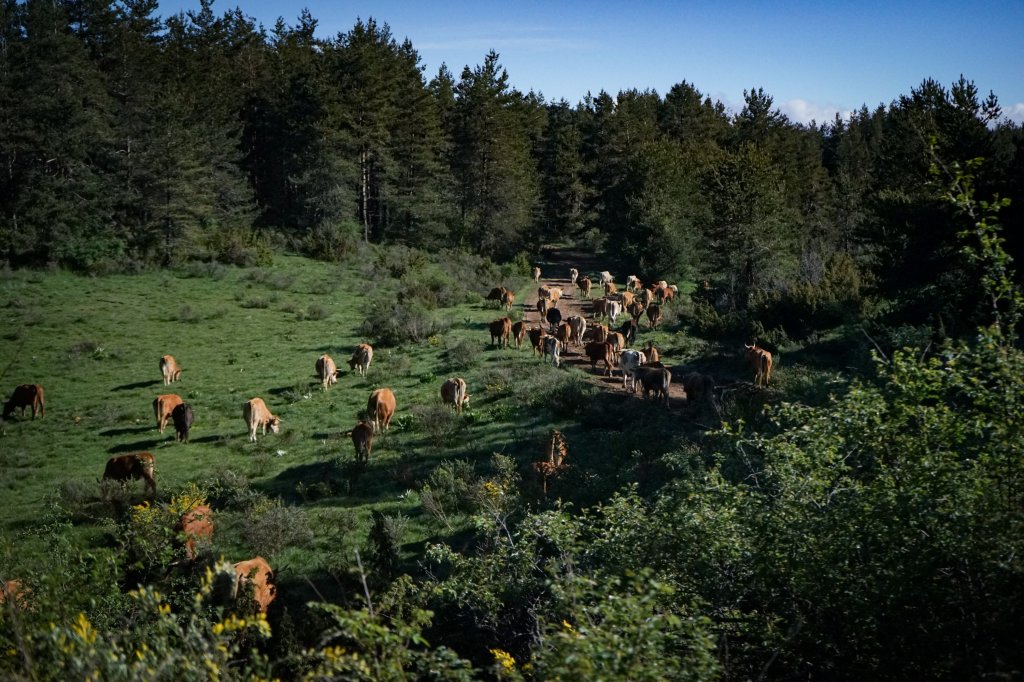 <<Τάσοοο!!! Στείλτες όλες πάνω!!!>> Φωνάζει στον βοηθό του ο Γιάννης, καθώς περιμένουμε δίπλα από το κοπάδι σε ένα ξέφωτο. Ήταν κάπου έξι το πρωί και από νωρίς έχουμε ξεστήσει και μπει στο δάσος και τους πρόποδες του οροπεδίου. Τα ζώα έχουν τους δικούς τους ρυθμούς, αλλά έπρεπε να συγχρονιστούμε.