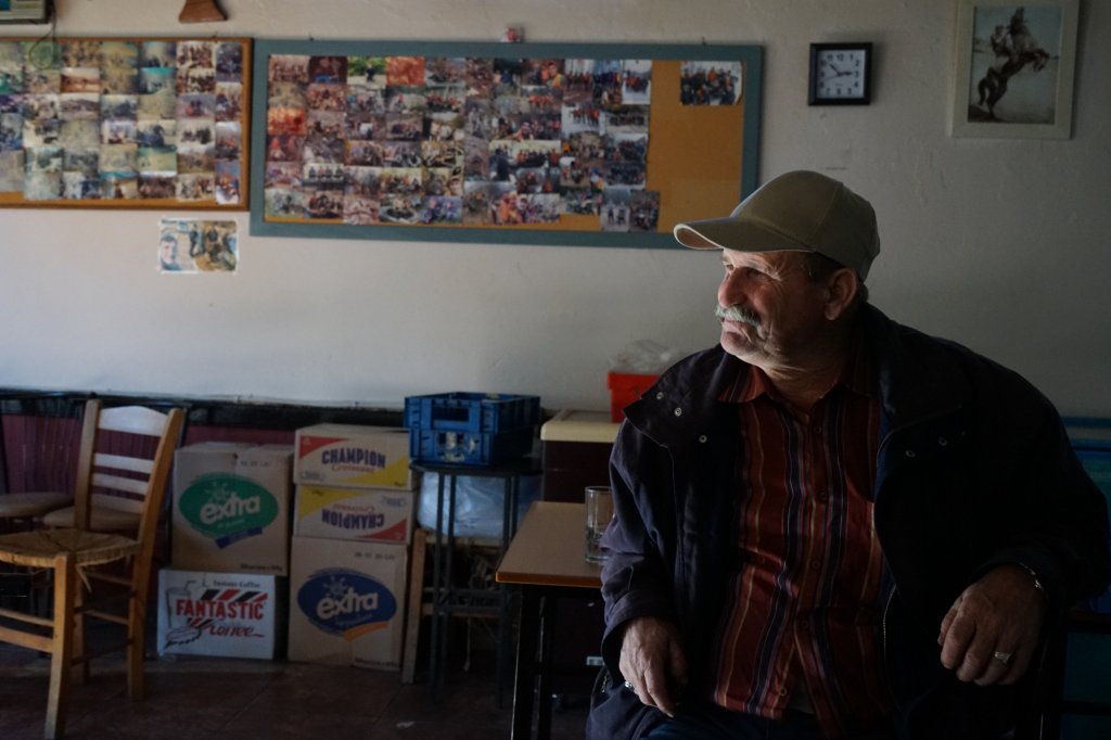 Στο μικρό καφενείο-παντοπωλείο του χωριού επικρατεί μια μικρή αναστάτωση.. κόσμος μπαίνει με μικρά χαρτάκια στα χέρια και λίγο αργότερα βγαίνει με κούτες και σακούλες. Κάποιοι κάθονται και περιμένουν πίνοντας αναψυκτικό ή καφέ. Είναι Παρασκευή και σήμερα είναι ημέρα αργίας, μία ευκαιρία να χαλαρώσουν και να προμηθευτούν τα απαραίτητα της εβδομάδας. Εγώ, διακριτικά, κάθομαι σε μια γωνιά και περιμένω. Οι περισσότεροι με χαιρετούν και κάποιοι κάθονται δίπλα μου να με γνωρίσουν. Όλοι θέλουν να μάθουν τι θέλει και τι “καπνό φουμάρει” αυτός ο φωτογράφος που γράφει ιστορίες…