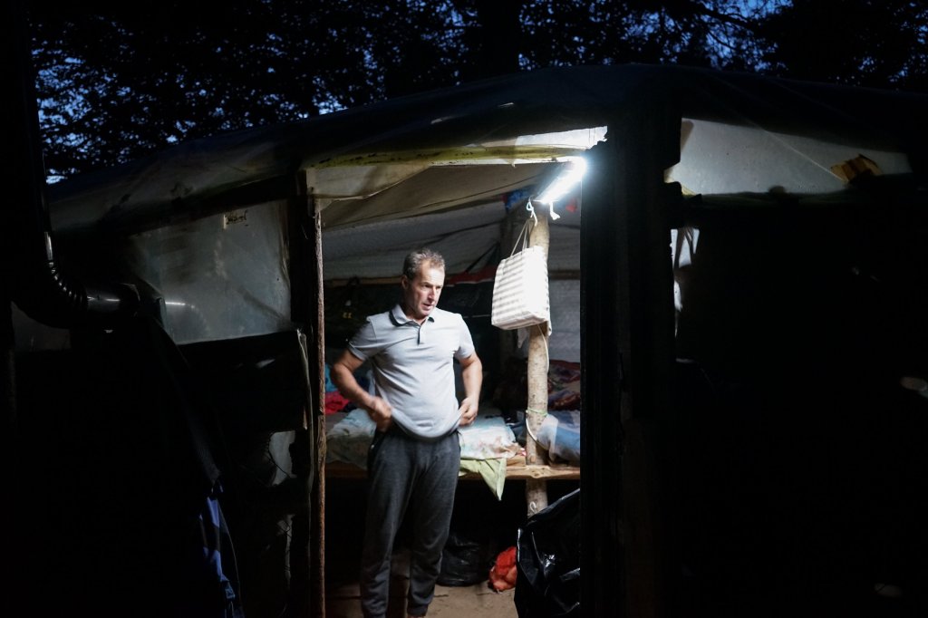 Έτσι κι εγώ, αφού τους ευχαριστήσω, χαιρετώ και παίρνω τον δρόμο για την αποψινή κατασκήνωση κοντά στην καλύβα του Γκιουνέρ και των άλλων. Τον Γκιουνέρ, όπως και τους περισσότερους, τον γνώρισα στο καφενείο το προηγούμενο βράδυ (Παρασκευή), όταν όλοι είχαν φύγει προς το τζαμί. Τότε είχα βρει την ευκαιρία να ησυχάσω για λίγο απολαμβάνοντας την ατμόσφαιρα του χωριού. Από μακριά ακουγόταν η προσευχή των παιδιών. Κάθισα έξω σε ένα πεζούλι για να ακούω καλύτερα, ενώ παραδίπλα κάτω από τον φωτισμό καθόταν μια νεαρή μητέρα που έπαιζε με το παιδί της . Ήταν όμορφες, πρωτόγνωρες στιγμές κι όμως λίγα χιλιόμετρα μακριά από τα συνηθισμένα. Αφού τελείωσε η προσευχή, ο κόσμος άρχισε να μαζεύεται πάλι πίσω στον καφενέ. Ήταν η τελευταία μου ευκαιρία να λύσω κι αυτό το κομμάτι του παζλ, δηλαδή ποια από τις πολλές διάσπαρτες, αυτοσχέδιες καλύβες στο βουνό θα επισκεφτώ. (Το πρόβλημα ήταν ότι αυτό το Σάββατο βράδυ οι περισσότεροι θα ήταν στον γάμο ενός συναδέλφου και φίλου, επομένως δεν θα διανυκτέρευαν στο δάσος). Ευτυχώς για εμένα όμως, εκεί ήρθε η γνωριμία μου με τον Γκιουνέρ. Ήταν απ’ τους λίγους που δεν θα κατάφερναν να παρευρεθούν. Έτσι μετά από τη σύντομη επικοινωνία μας, συμφώνησε να τους επισκεφτώ.
